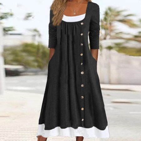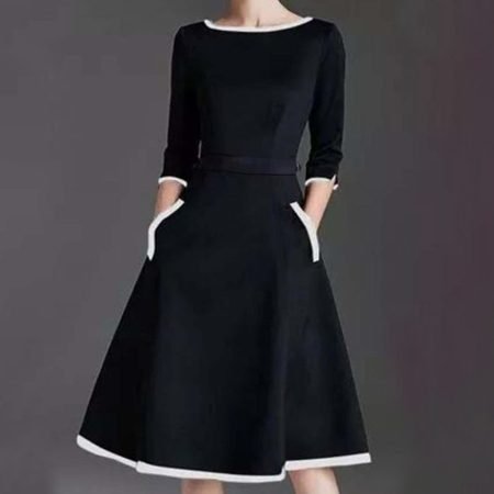 $71.99Original price was: $71.99.$49.99Current price is: $49.99.Description: Neckline: Round Neck Sleeve Length: 3/4 Sleeve Dress Length: Midi Pattern Type: Color Block Silhouette: A-line Side Pockets Material: 40% Elastane, 60% Rayon Machine Washable Size Chart: Size Bust Length Sleeves inch cm inch cm inch cm S 35 88 43 108 14 35 M 36 92 43 110 14 36…