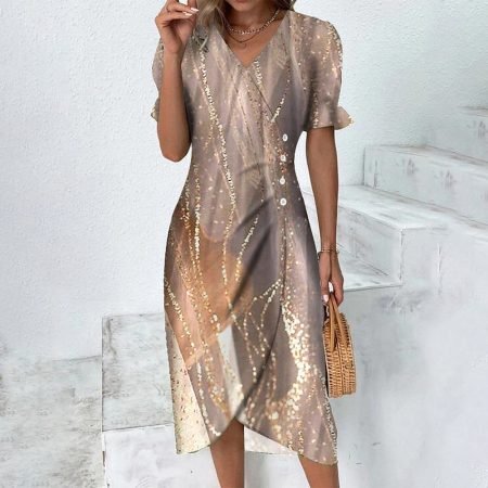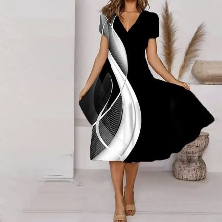 $64.99Original price was: $64.99.$45.99Current price is: $45.99.Description: Neckline: V-neck Sleeve Length: Short Sleeve Pattern Type: Print Dress Length: Midi Silhouette: A-line Material: 35% Elastane, 65% Rayon Machine Washable Size Chart: Size Bust Length Sleeves inch cm inch cm inch cm S 36 92 46 117 10 25 M 38 96 47 120 10 26 L 40 101…