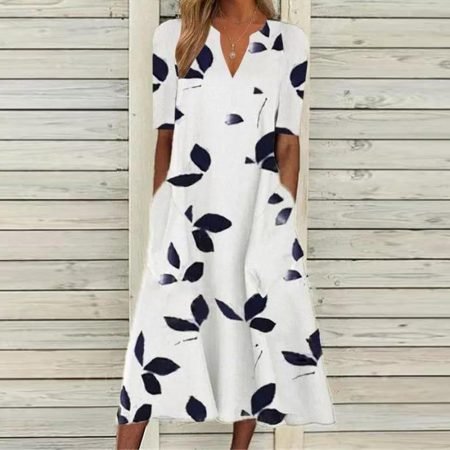 $67.99Original price was: $67.99.$50.99Current price is: $50.99.Description: Pattern Type: Plain V-neck Sleeve Length: Short Sleeve Dress Length: Midi Silhouette: A-line Side Pockets Material: 35% Elastane, 65% Rayon Machine Washable Size Chart: Size Bust Length Sleeves inch cm inch cm inch cm S 36 92 46 117 5 12.5 M 38 96 47 120 5 13 L 40 101…