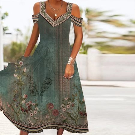 $63.99Original price was: $63.99.$47.99Current price is: $47.99.Description: Neckline: V-neck Sleeve Length: Sleeveless Dress Length: Midi Silhouette: A-line Pattern Type: Print Material: 45% Elastane, 55% Rayon Machine Washable Size Chart: Size Bust Length inch cm inch cm S 36 92 42 106 M 38 96 43 108 L 40 101 43 110 XL 42 107 44 112 XXL 45 115 45…