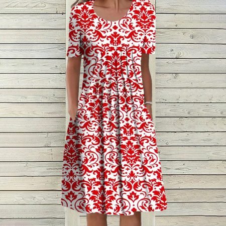 $65.99Original price was: $65.99.$42.99Current price is: $42.99.Description: Neckline: Round Neck Sleeve Length: Short Sleeve Dress Length: Midi Silhouette: A-line Pattern Type: Print Side Pockets Material: 35% Elastane, 65% Rayon Machine Washable Size Chart: Size Bust Length Sleeves inch cm inch cm inch cm S 38 96 42 107 9 23 M 39 100 43 110 9 24 L 41…