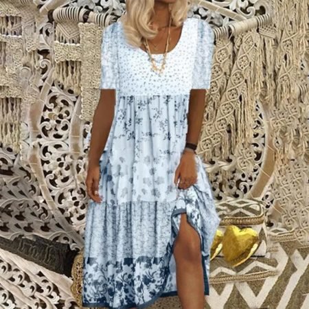 $66.99Original price was: $66.99.$46.99Current price is: $46.99.Description: Neckline: Round Neck Sleeve Length: Short Sleeve Dress Length: Midi Silhouette: A-line Pattern Type: Print Material: 45% Elastane, 55% Rayon Machine Washable Size Chart: Size Bust Length Sleeves inch cm inch cm inch cm S 38 96 46 117 9 24 M 39 100 47 120 10 25 L 41 105 48…