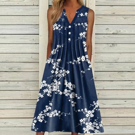 $65.99Original price was: $65.99.$42.99Current price is: $42.99.Description: Neckline: V-neck Sleeve Length: Sleeveless Dress Length: Midi Pattern Type: Floral Silhouette: A-line Side Pockets Material: 35% Elastane, 65% Rayon Machine Washable Size Chart: Size Bust Length inch cm inch cm S 36 92 50 127 M 38 96 51 130 L 40 101 52 133 XL 42 107 54 136 2XL 45…