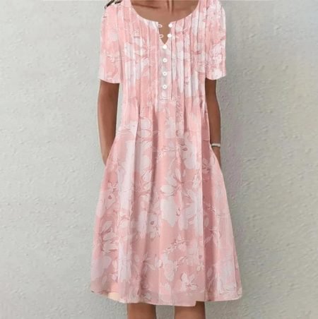 Description: Neckline: Round Neck Sleeve Length: Short Sleeve Dress Length: Midi Silhouette: A-line Pattern Type: Print Side Pockets Material: 35% Elastane, 65% Rayon Machine Washable Size Chart: Size Bust Length Sleeves inch cm inch cm inch cm S 38 96 42 107 9 23 M 39 100 43 110 9 24 L 41…