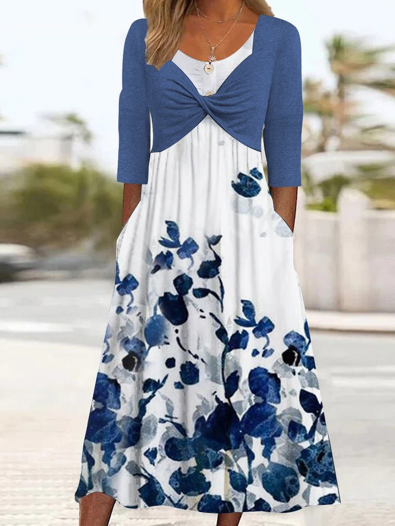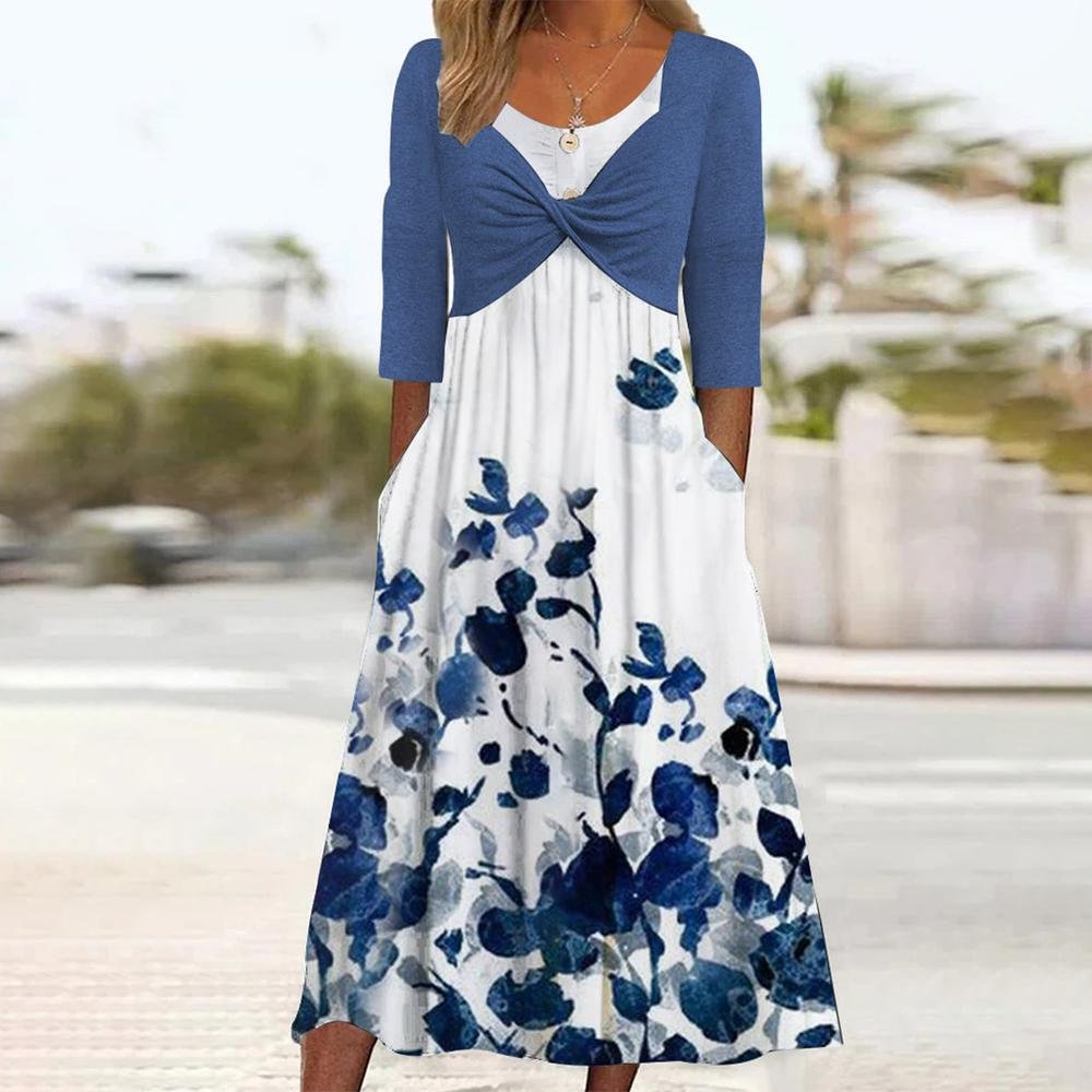 Description: Neckline: Round Neck Sleeve Length: Long Sleeve Dress Length: Midi Pattern Type: Print Silhouette: A-line Side Pockets Material: 45% Elastane, 55% Rayon Machine Washable Size Chart: Size Bust Length Sleeves inch cm inch cm inch cm S 35 88 46 117 14 35 M 36 92 47 120 14 36 L…