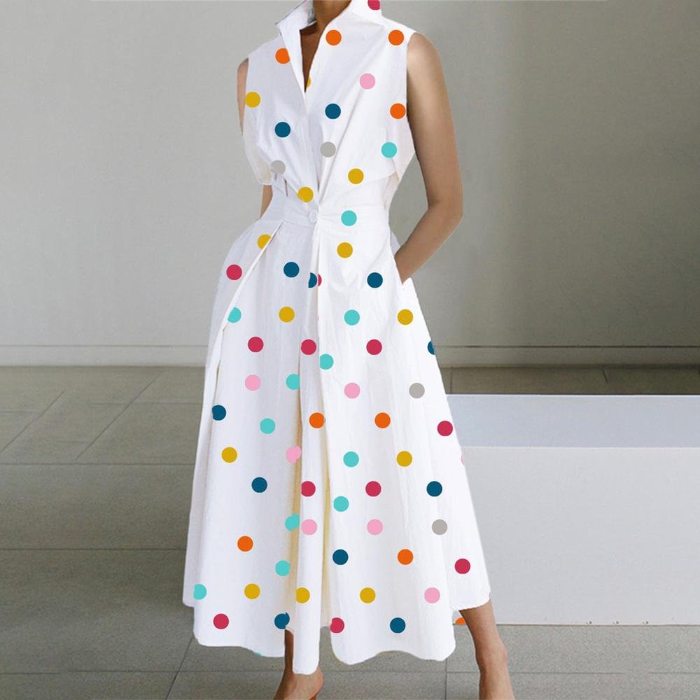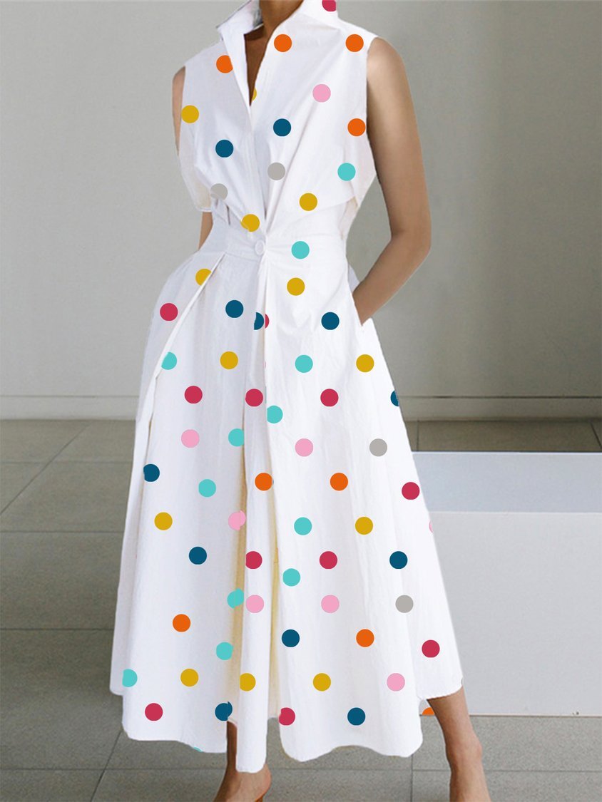 White Colorful Polka Dot Retro Sleeveless Midi Dress