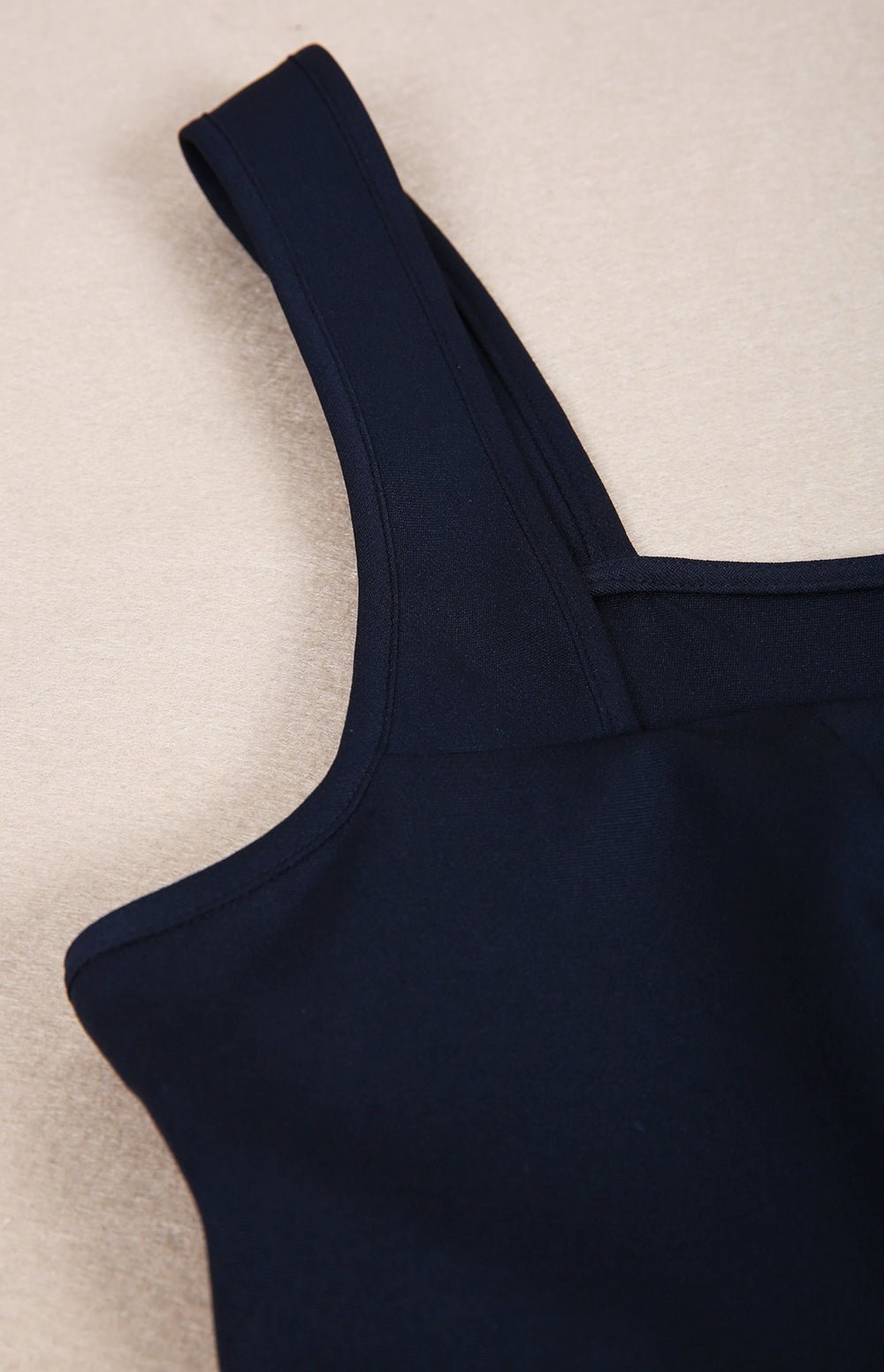 Chic Empire Waist Strap Deep Navy Midi Dress