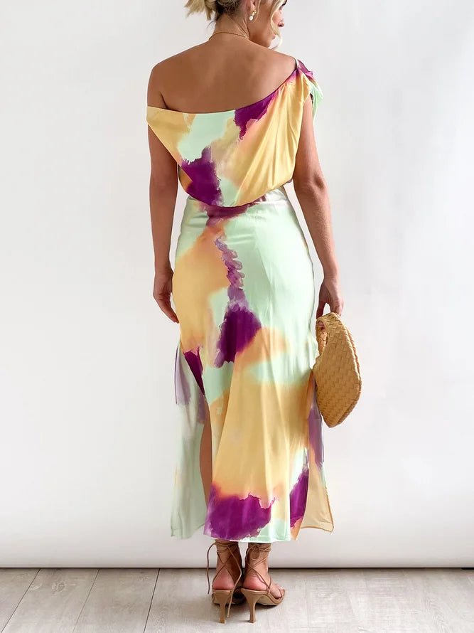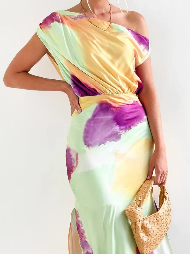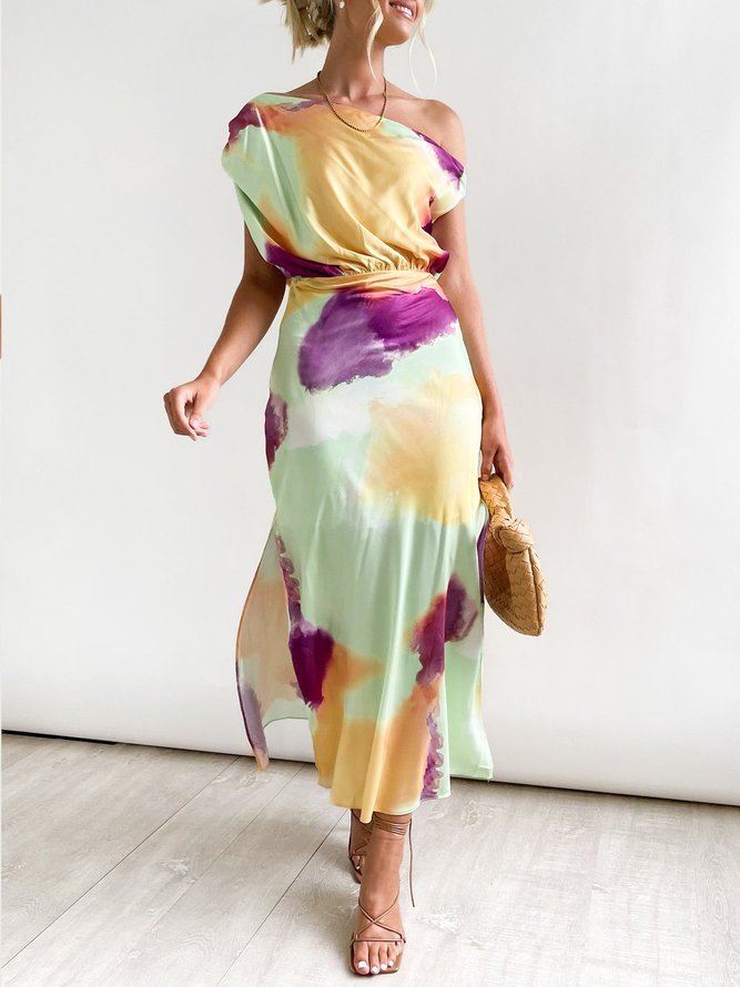 Elegant Multicolor Print Midi Dress