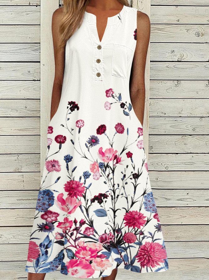 Romantic Floral Print Sleeveless Midi Dress